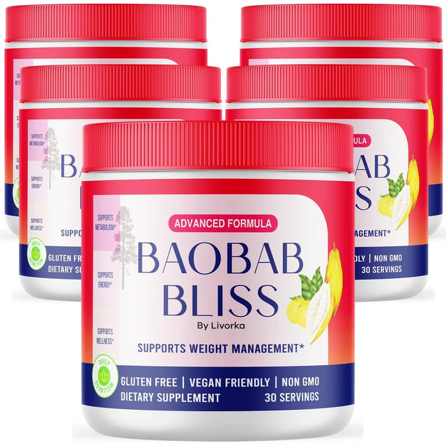 (5 Pack) Baobab Bliss Powder, Baobab Bliss Organic Powder, Baobab Bliss Powder All Natural Fiber Supplement, Baobab Bliss Fruit Powder, Baobab Bliss Powder Organic Review, 150 Servings For 5 Months