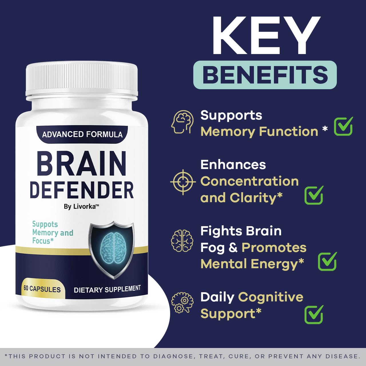- Brain Defender is designed to support mental clarity, focus, memory, and overall cognitive wellness as a complement to a healthy lifestyle.