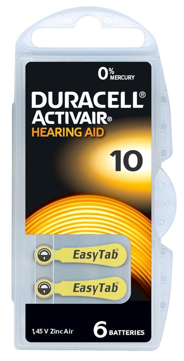 Details: Duracell Activair Hearing Aid Batteries with Easy Tabs, Size: 10, 0% Mercury