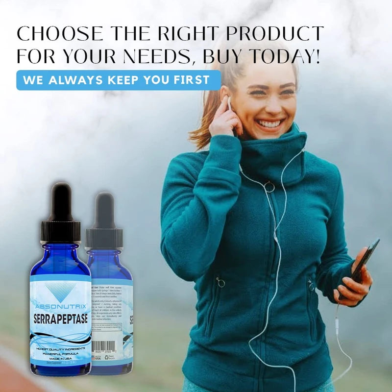 Absonutrix Serrapeptase Enzyme 583mg,125000 spu, 4 Oz drops, 200 Servings, Made in USA, Quick Absorption, Quality Ingredients, Third-Party Tested, Non-GMO, GMP Certified, Cruelty Free Products
