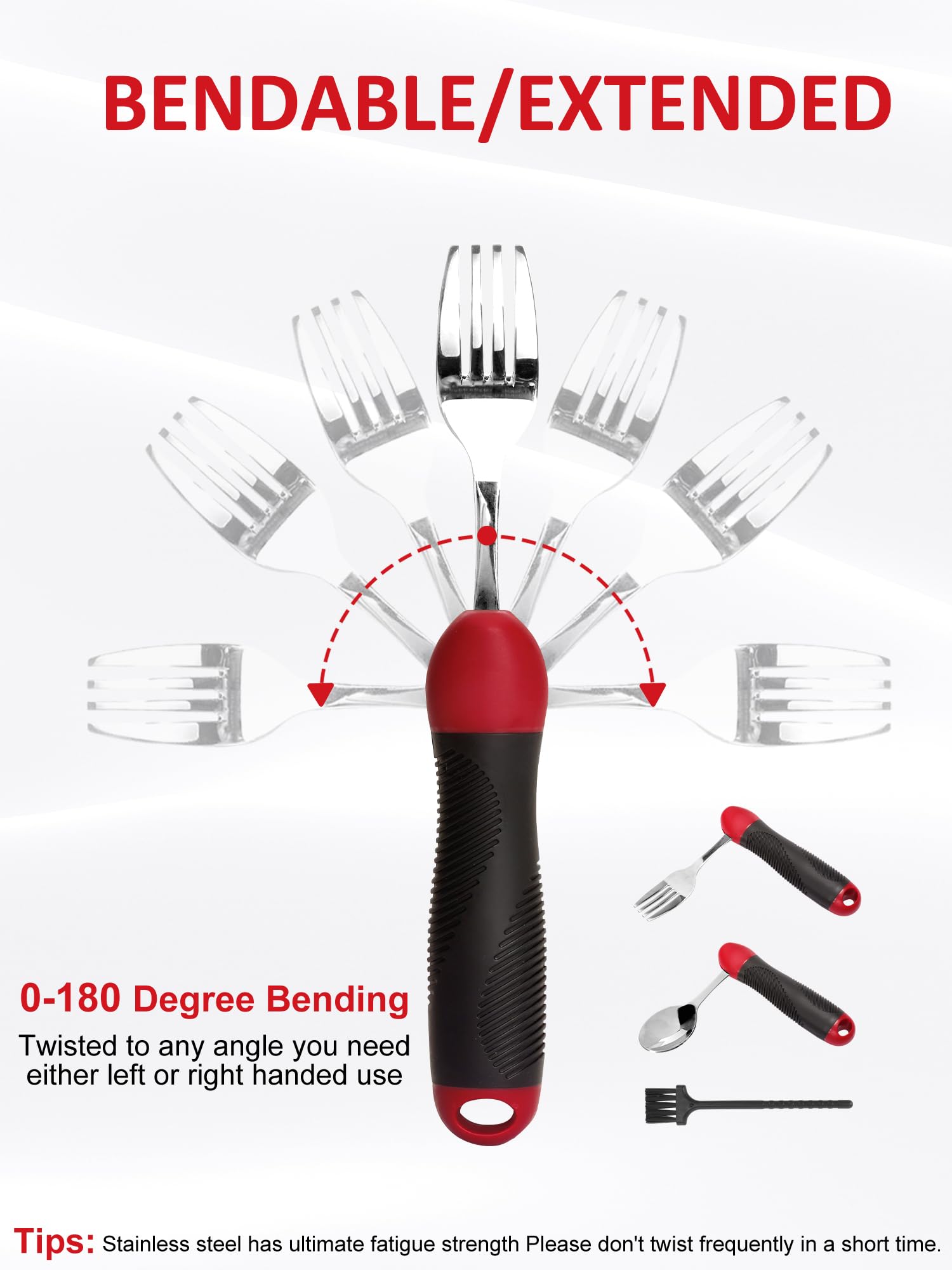 - - Extended Adaptive Utensils, overall length 9.25'', enlarged style. - Check out this Swivel Utensil set, which includes a fork, a soup spoon, a cleaning brush.