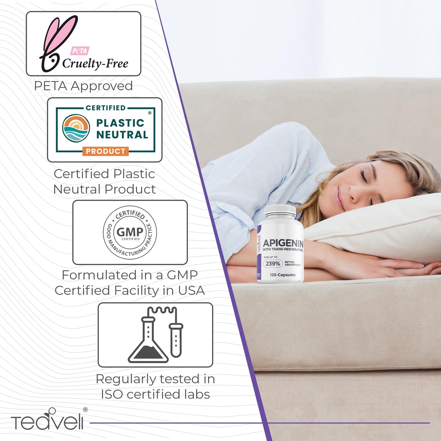 - PLASTIC NEUTRAL AND PETA CERTIFIED: Apart from using recyclable, high-grade HDPE bottles, we’ve developed a system that removes as much plastic from the environment as we create throughout each product’s life cycle. Teaveli is also a PETA-certified animal test-free product. Our Apeginen supplement is made without GMOs, gluten, and preservatives.