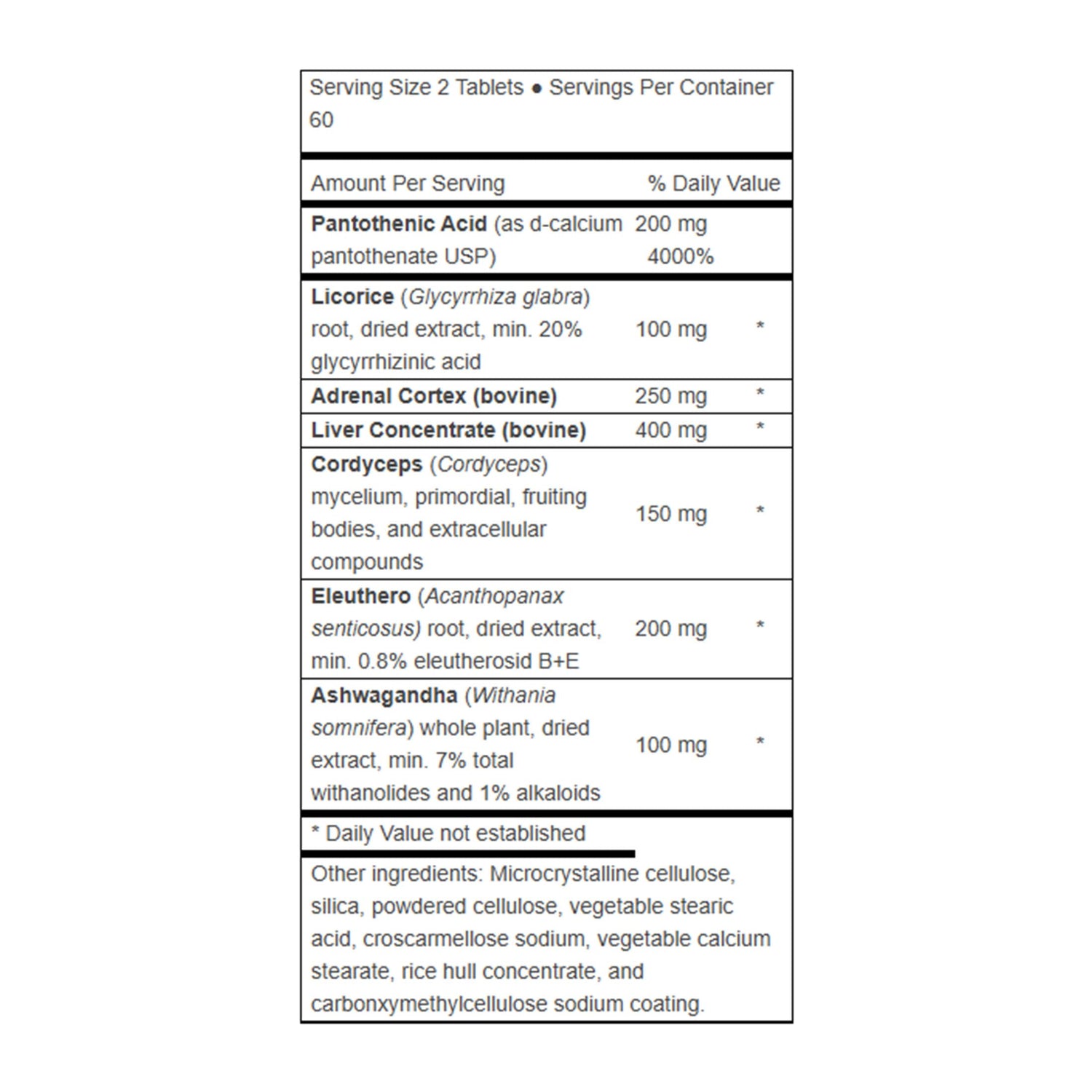 - ADRENAL NUTRIENTS: These four nutrients help to support your adrenals. Pantothenic acid supports healthy levels of hormones like cortisol and progesterone. Licorice root is a rich source of glycyrrhizin, which helps slow down the body's breakdown of cortisol. Liver concentrate helps to support healthy energy levels. Adrenal Cortex Extract is traditional support for adrenal health.