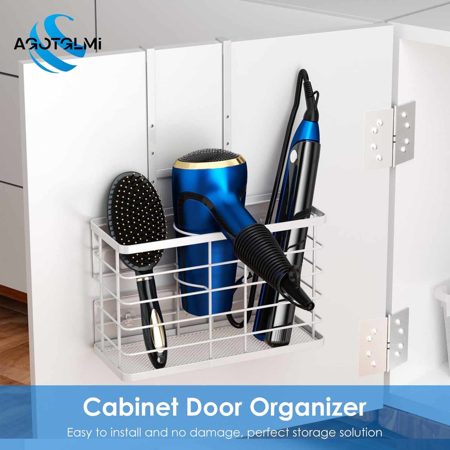 - 【Enjoy Your Extra Space】Agotglmi blow dryer holder meet your different demands. The cabinet door organizer have 3 compartments, it's perfect for holding all your hair care styling tools: hair dryer, blow dryers, flat Iron, curling iron, clippers, straightener, brush, comb, beauty products and more to keep your bathroom more organized and easy to grab any of the tools. Ideal for bathrooms, guest bathrooms and powder rooms etc.