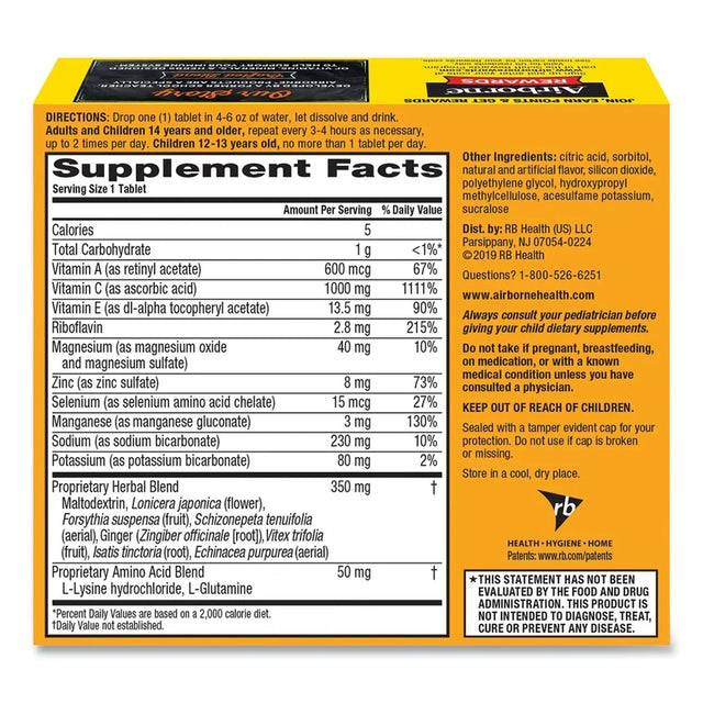 Airborne, Immune Support Supplement Effervescent Tablets, Zesty Orange, 30 Count