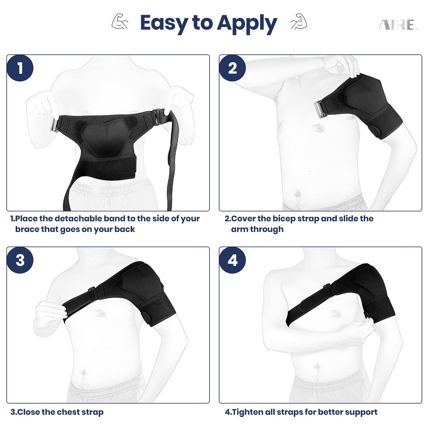 AIRE Shoulder Brace for Men and Women Recovery, Adjustable Shoulder Support for Rotator Cuff, AC Joint Pain Relief, Arm Sling for Injury, Perfect Fit Arm Compression Sleeve (One Size Regular)