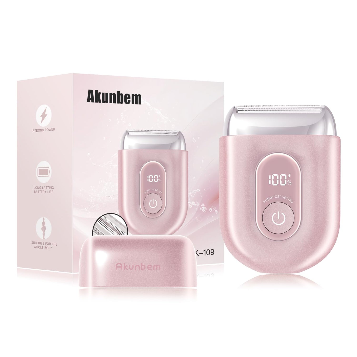 Akunbem Electric Razor for Women - Mini Bikini Trimmer - Shaver for Pubic, Legs, Arm & Body - Painless Hair Removal Device - Cordless Wet & Dry Use
