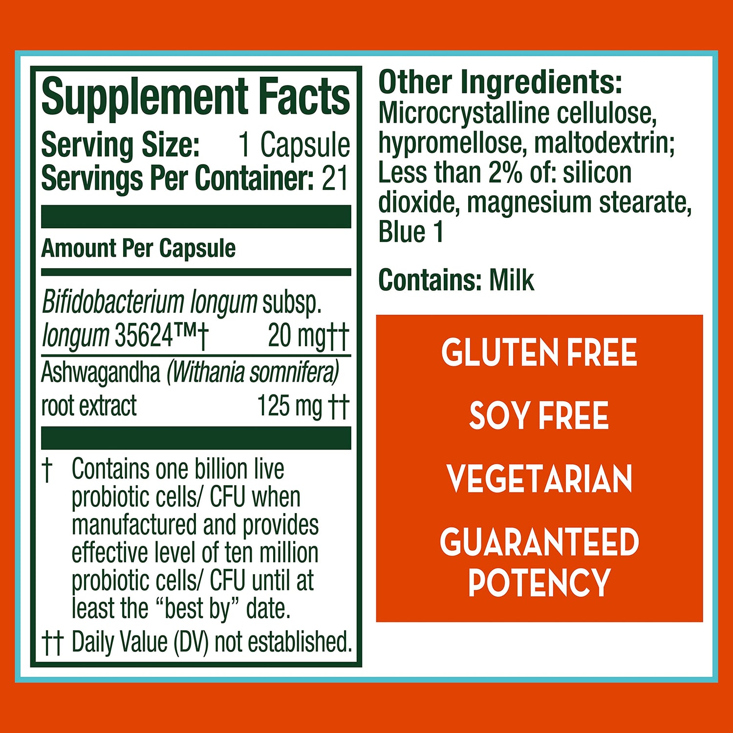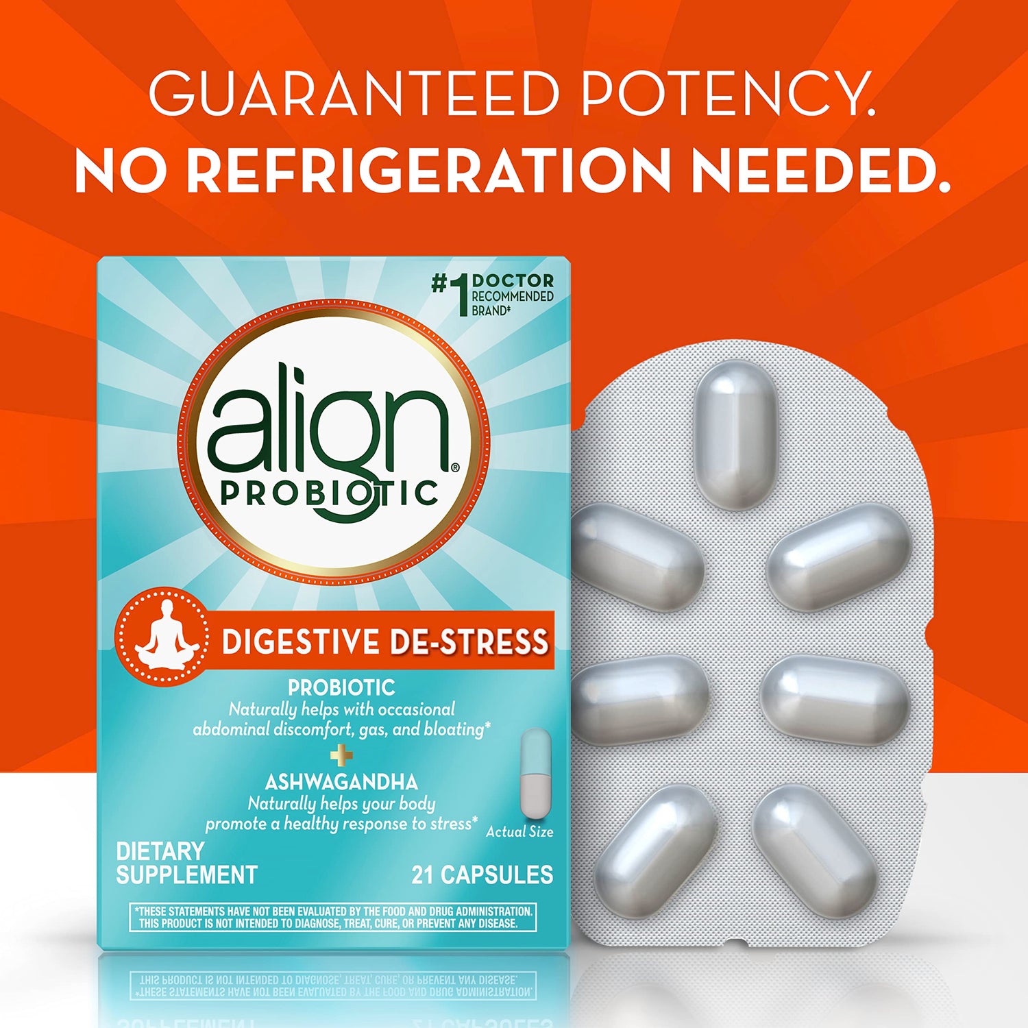 Align Probiotic, Digestive De-stress, Probiotic for Women and Men with Ashwagandha, Helps with a Healthy Response to Stress, Gluten Free, Soy Free, Vegetarian, 21 Capsules