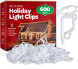 All-Purpose Holiday Light Clips [Set of 600] Christmas Light Clips, Outdoor Light Clips - Mount to Shingles & gutters - Works with Mini, C6, C7, C9, Rope, Icicle Lights - No Tools Required - USA Made