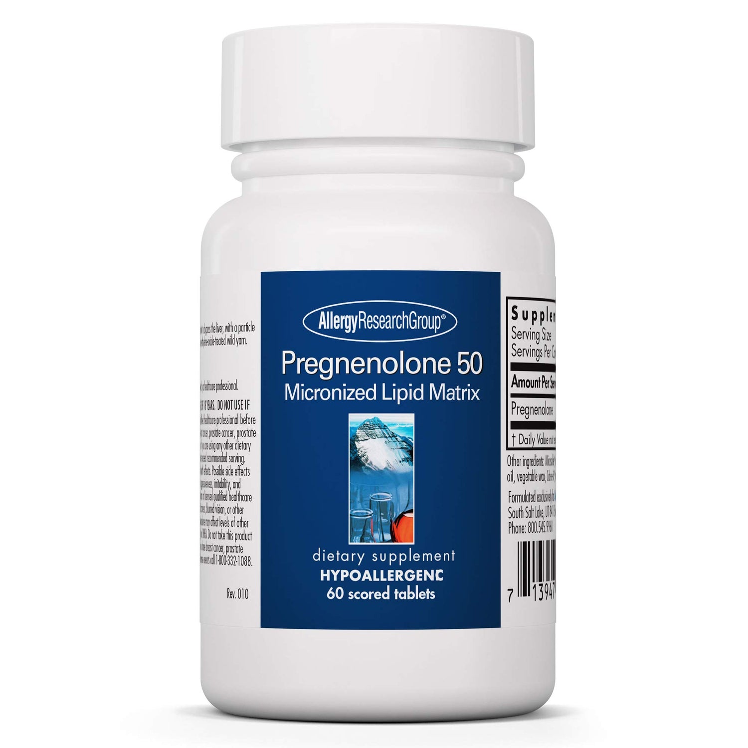 Allergy Research Group Pregnenolone Supplement - Progesterone Supplements 50mg, Hormone & Stress Support, Made from Non-GMO Wild Yam, Micronized Lipid Matrix, Plant-Sourced, Scored Tablets - 60 Count