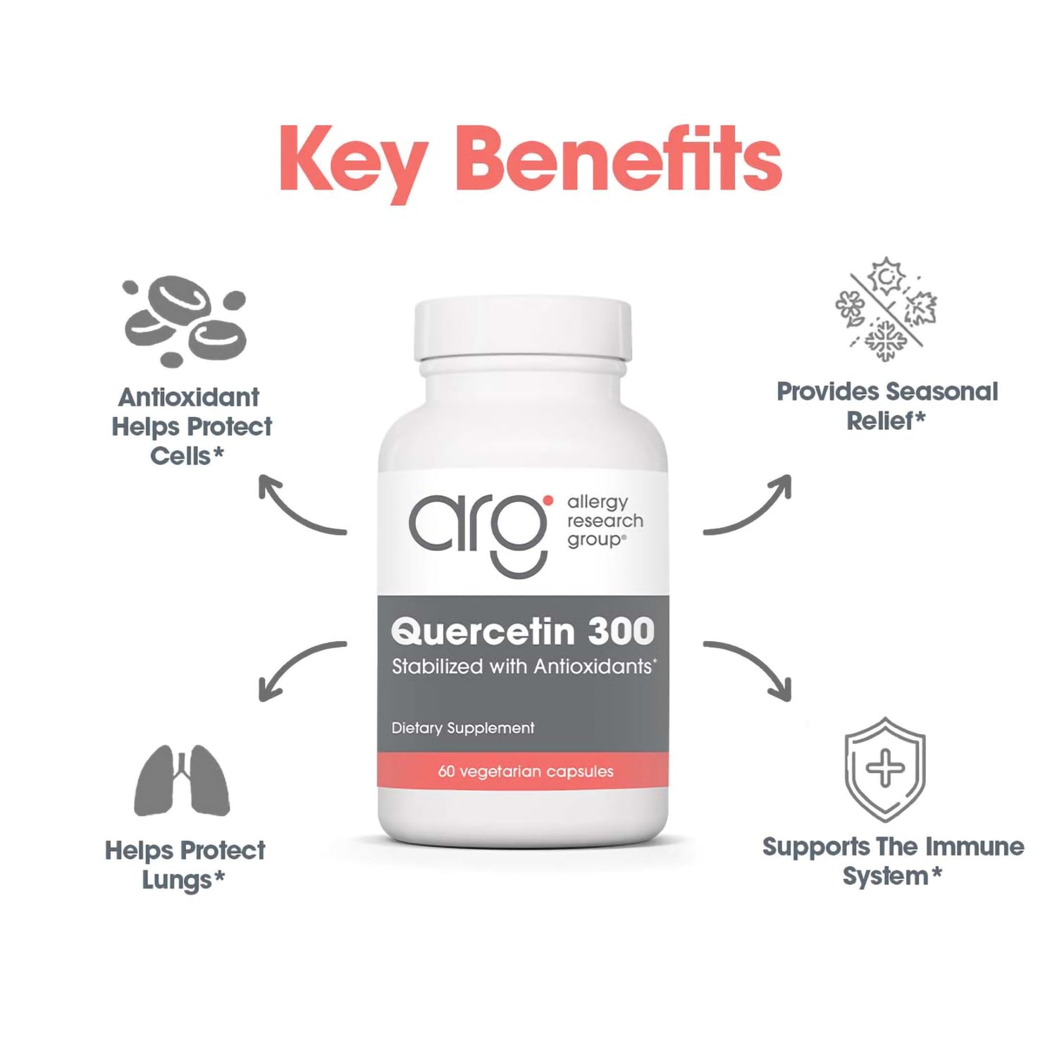 Allergy Research Group Quercetin 300 Dietary Supplement - Immune Support, Stabilized with Antioxidants, Bioflavonoid, Mast Cell, Hypoallergenic, Delayed-Release, Vegetarian Capsules - 60 Count