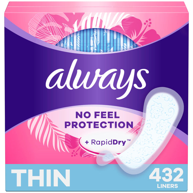 Always Thin No Feel Protection Daily Liners, Regular Absorbency, Unscented, 216 Count x 2 (432 Count Total)