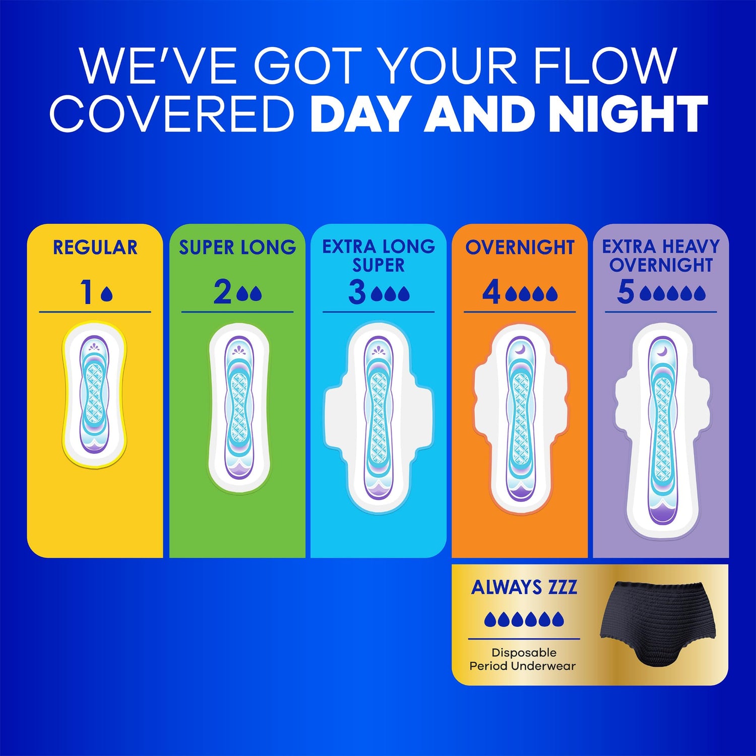 Details: Are you ready for the unexpected GUSH? New Always Ultra Thin is With new and improved RapidDRY technology, new Always Ultra Thin absorbs gushes 3X faster (Always Ultra Thin size 2 vs leading size 2 store brand pad) to give you that CLEANER, DRIER, FRESHER pad feeling. And it does that all day long New Always Ultra Thin is also equiped with LeakGUARD core that locks in leaks for long-lasting protection. Plus, OdorLOCK that helps prevent unwanted odors to help you feel fresh and clean throughout your whole day So, why settle when you can choose Always? Always Ultra Thin. Always Gush Ready. Don't know which pad size to use? Always Ultra Thin Pads come in a range of sizes from 1 to 5 to fit your flow and size perfectly. If you have a light flow or need a teen-sized pad, then we would recommend using our Always Ultra Thin size 1 to 3. If you have a heavy flow or want overnight protection, then we recommend sizing up to our size 4 or 5 Ultra Thin Pad. We've got your flow covered day and night for up to 100% leak-free comfort. Always Ultra Thin pads have up to 8 hours protection. Always Gush Ready, so try Always Ultra Thin.