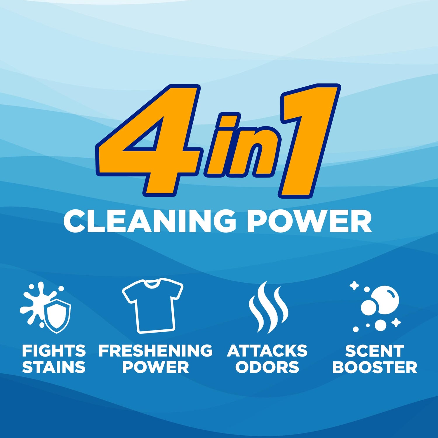 - Liquid concentrated laundry detergent features a crisp, just-washed clean fragrance that infuses a fresh scent to towels, sheets, team uniforms and more