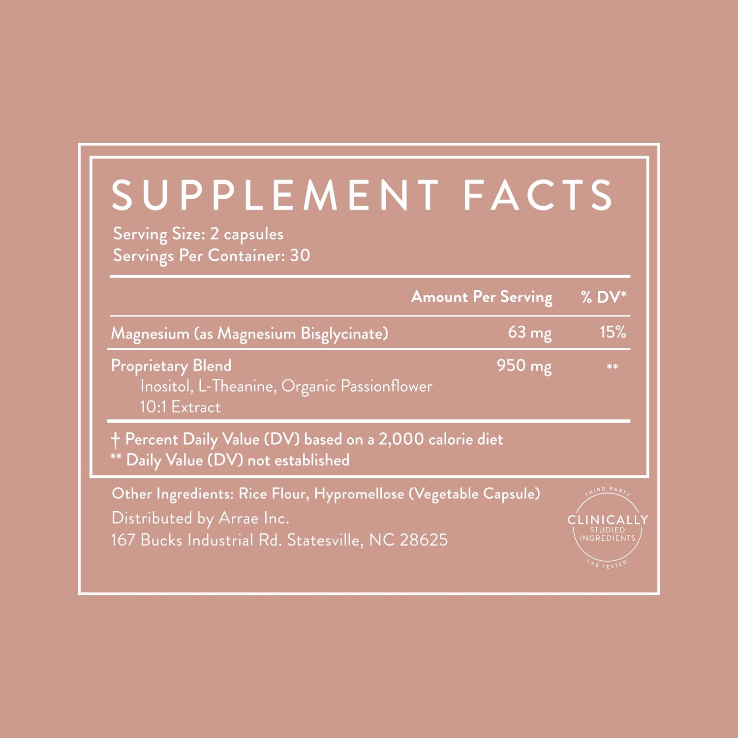 Arrae Calm Cortisol Manager - 60 Stress & Panic Relief Capsules - Mood Support Supplement w/L-Theanine, Inositol, Passionflower, & Magnesium to Help You Feel Zen