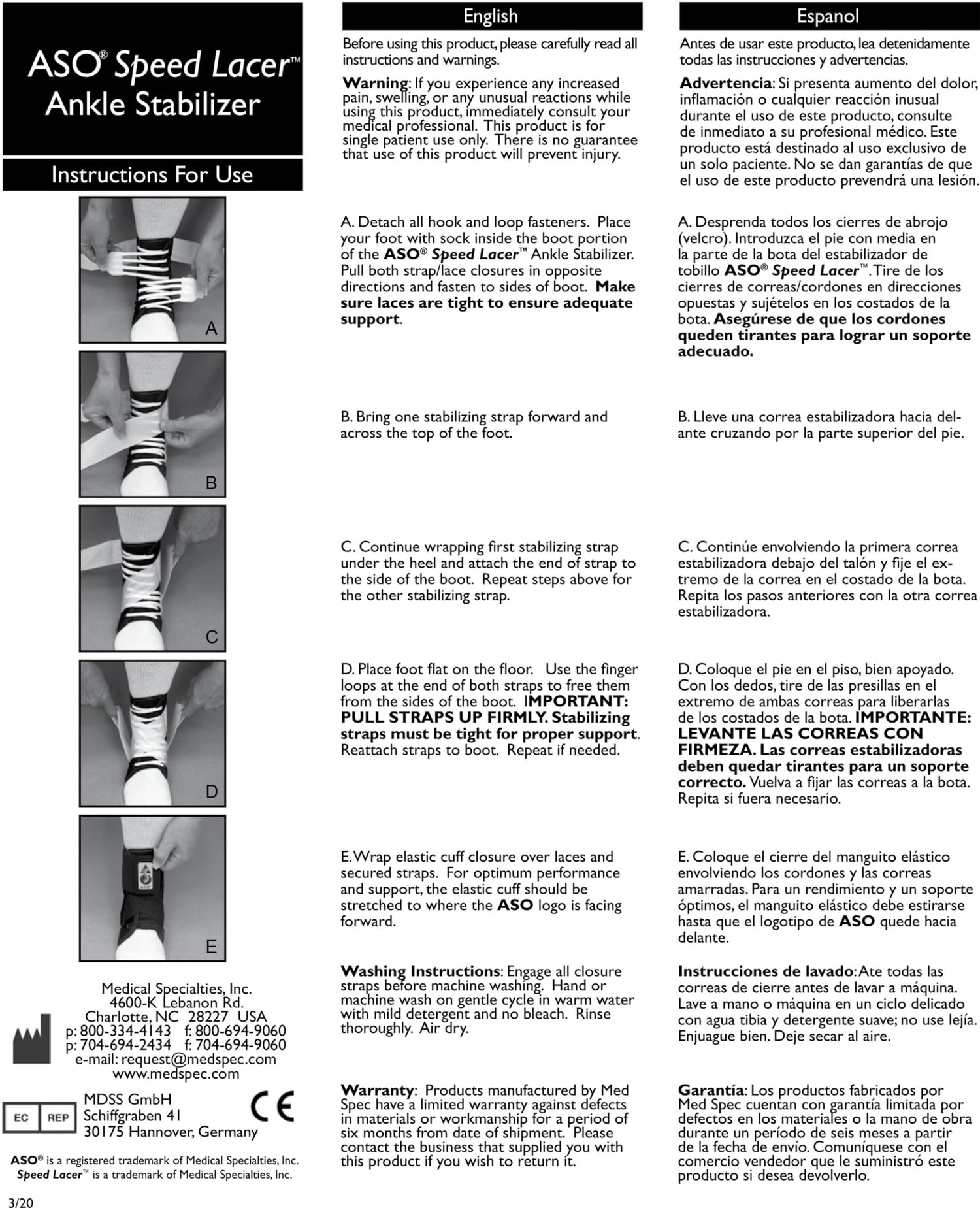 Details: Speed lace closure: allows easier and faster application. Stabilizing straps: form figure-eight to protect and support ankle. Elastic cuff closure: enhances support from stabilizing straps. Low profile: will fit in any type of shoe. Bilateral design: each size fits left or right foot. Breathable nylon boot: enhanced breathability for long-term wear. US manufacturing: higher quality control standards. Each ankle brace is sold separately. Machine wash gentle cycle, no bleach. Air dry.