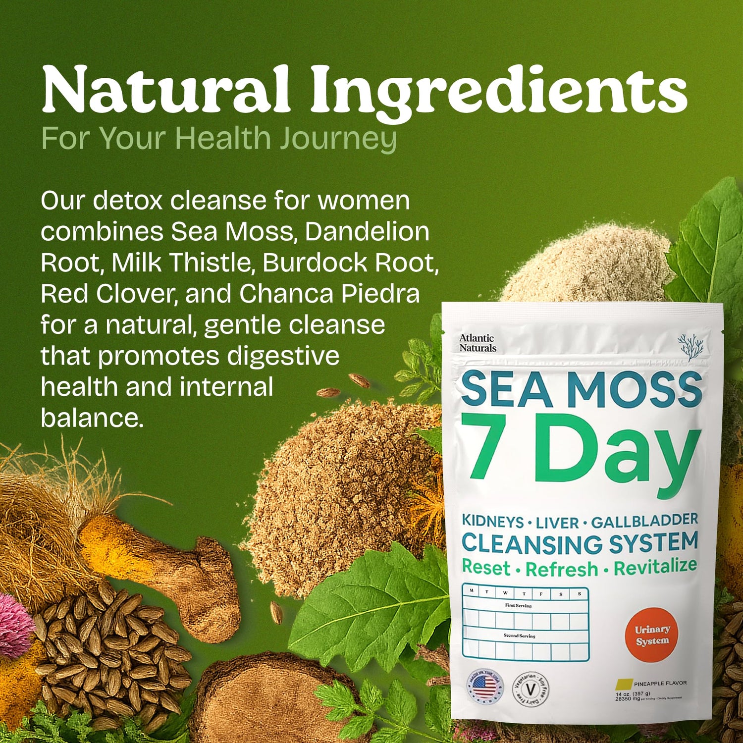 - 7 DAY CLEANSE PROGRAM: Created for a gentle colon cleanse for women, this 7 day detox cleanse for women integrates easily into your routine. Whether you're beginning a wellness journey or maintaining your digestive health, this 7 day sea moss cleanse for women formula offers natural detoxification.