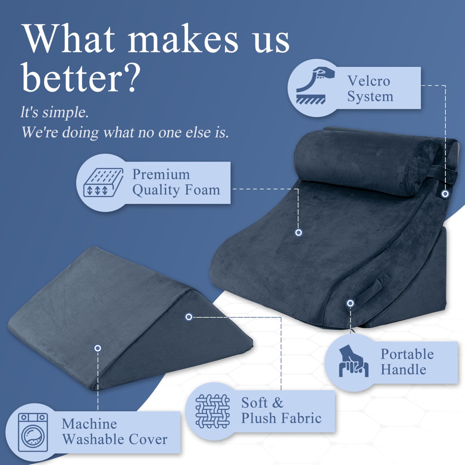 Axelrod Orthopedic Bed Wedge Pillow Set, Post Surgery Foam for Back, Neck and Leg Pain Relief Comfortable & Adjustable Ortho Pillows- Anti Snoring, Heartburn, Acid Reflux & GERD Sleeping Dark Indigo