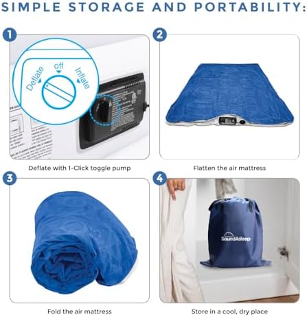 SoundAsleep Dream Series Luxury Air Mattress with ComfortCoil Technology & Built-in High Capacity Pump for Home & Camping- Double Height, Adjustable, Inflatable Blow Up, Portable - Queen Size