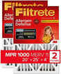 Filtrete NADP03-2PK-2 08189005996 MPR 1000 20 x 25 x 4 (4-3/8 Actual Depth) Micro Allergen Defense Deep Pleat HVAC Air Filter, Uncompromised Airflow, 2-Pack, 20x25x4, No Color, 2 Count
