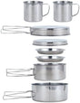 - 【Built To Last and Easy Clean】BeGrit Camping pot set heat quickly and is survival gear that is built to last. 410 stainless steel material, make it easy to clean and more durable.