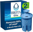Brita Filter Replacements for Water Pitchers and Dispensers, Elite, NSF Certified to Remove 99% of Lead, 2 Count, Blue