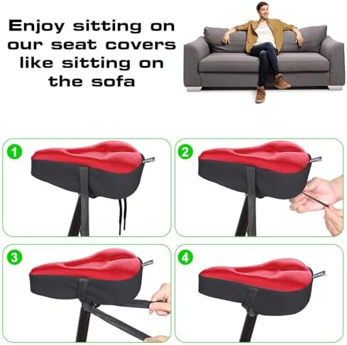 Zacro Bike Seat Cushion - Gel Padded Bike Seat Cover for Men Women Comfort, Extra Soft Exercise Bicycle Seat Compatible with Peloton, Outdoor & Indoor Bike Saddles