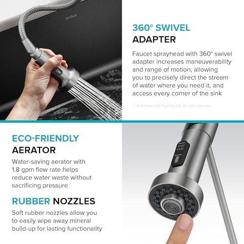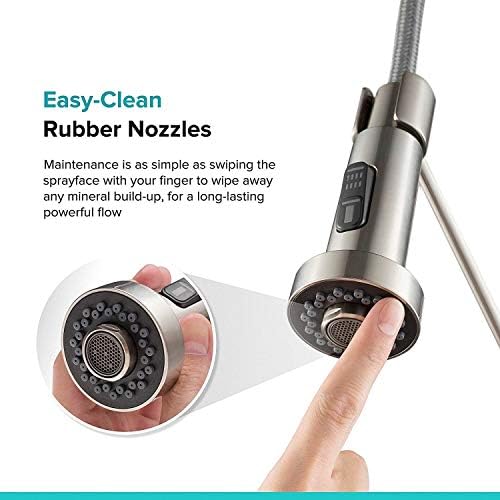 - KITCHEN FAUCET WITH PULL DOWN SPRAYER: Reach Technology offers maximum maneuverability, with an easy-retract hose and swivel adapter that enables a full range of motion so you can reach all around the kitchen sink