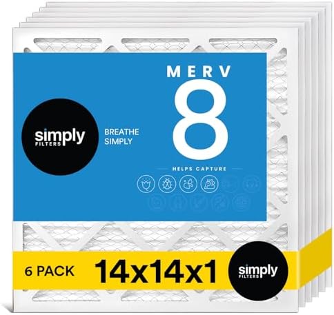 Simply 14x14x1 Air Filter, MERV 8, MPR 600, 6 Pack, For Home AC Furnace & HVAC (Actual Size: 13.75"x13.75"x0.75") DUST, Pet, & Allergy Control
