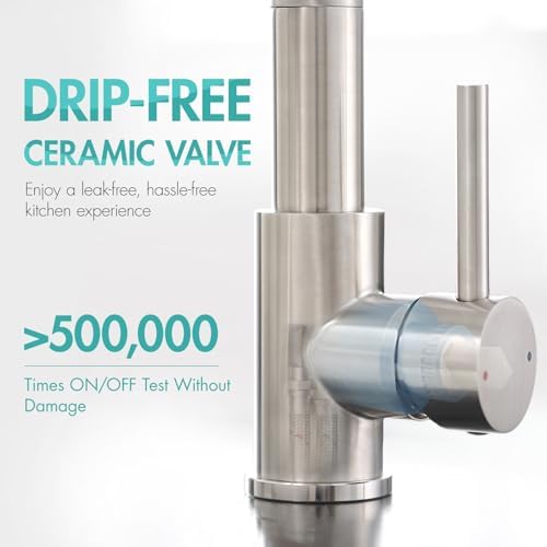 - Single Handle: easy control of hot and cold water.Spout rotation range: 360 degree, offers two different spray or stream ways.