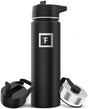 IRON °FLASK Camping & Hiking Hydration Flask with 3 Lids - Stainless Steel, Double Walled & Vacuum Insulated Water Bottle - Leak Proof & BPA Free (Midnight Black, Straw - 22 oz)