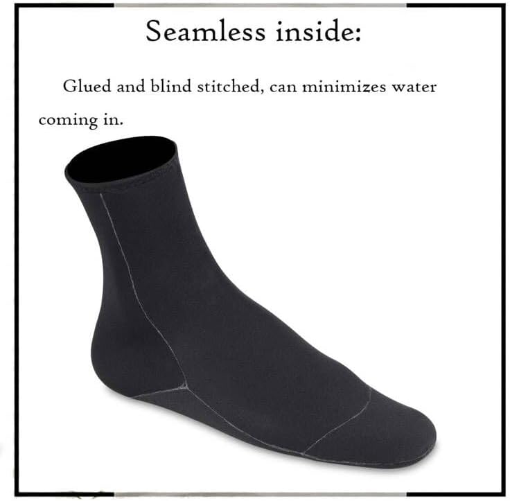 - FLATLOCK STITCHING:OMGear beach water socks sewn by flatlock stitched seams,which are durable and stretchy,guaranteeing a long service life.The difference between flatlock stitching and glued blind stitching is with or without gluing.Gluing can minimize water coming inside the neoprene water socks.Flatlock stitching(without gluing) is suitable for Spring,Summer and Autumn.Glued blind stitching is not only better function in cold winter,but also perfect for other seasons.