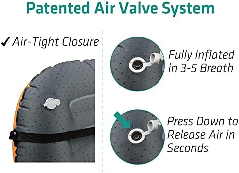 - EASY TO INFLATE/DEFLATE: The blow-up pillow inflates with 5-8 breaths, and the quick deflate button releases air in seconds—making this inflatable pillow a breeze to pack. inflate the pillow to your preferred firmness.