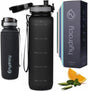 Hydracy Water Bottle with Time Marker -Large BPA Free Water Bottle & No Sweat Sleeve -Leak Proof Gym Bottle with Fruit Infuser Strainer & Times to Drink -Ideal for Fitness Sports & Outdoors