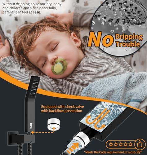 - Reliable Support & Certified Safety: Backed by 24/7 customer support, this Rain Shower Head and Handle Set ensures a stress-free experience. It features a cUPC certified pressure balance valve with built-in check valves to monitor water pressure and prevent scalding, approved by the California Energy Commission for standard 1/2-inch US pipe connections.