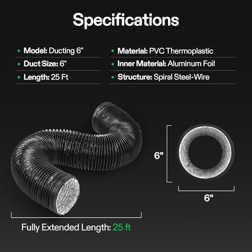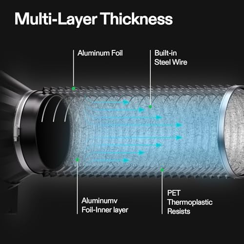 - Flexible and Convenient: Thanks to the built-in steel wire, the length and shape of this ducting is flexible to change for fitting exhaust fan blower or inline fan; Being portable and lightweight, it can be installed at any place; Comes with 2 duct clamps in the same duct opening size for easy setup and securer connection