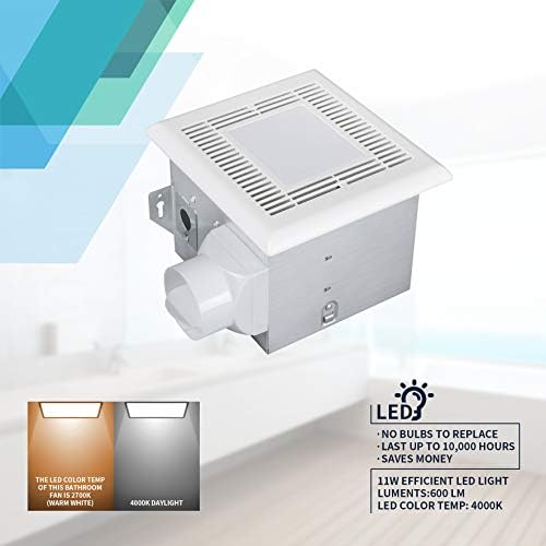 - Very quiet bathroom fan (2.0 sones) and Strong air movement (70CFM) for bathroom up to 75 Sq. Ft. Note: Use 3inch ducting.