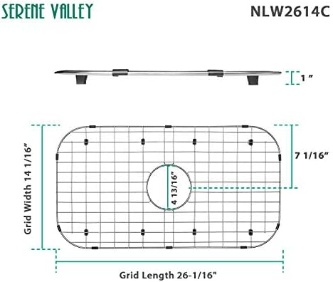 Serene Valley Sink Protector Grid 26-1/16" x 14-1/16", Centered Drain with Corner Radius 3-1/2", 304 Stainless Steel Material NLW2614C