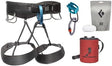 Black Diamond Mens Momentum Rock Climbing Harness Package with Harness, Chalk Bag, Chalk, Locking Carabiner, and Belay Device