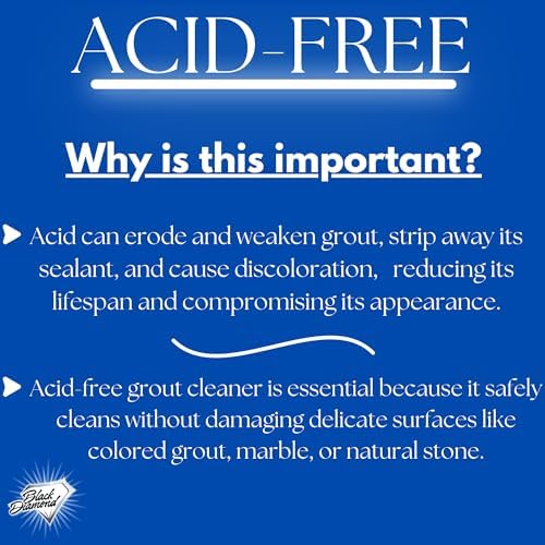 - Acid-Free Formula: Safely cleans grout without damaging colored grout or natural stone surfaces, ensuring effective stain removal while maintaining surface integrity.