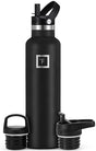 IRON °FLASK Camping & Hiking Hydration Canteens - 3 Lids (Narrow Straw Lid) Leak Proof Vacuum Insulated Stainless Steel - Hot & Cold Double Walled Sports Water Bottle - Midnight Black, 24 Oz