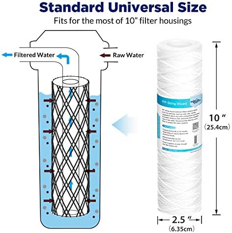 - MULTIPLE ADVANTAGES: This String-wound sediment water filter has FOUR times the dirt holding capacity and DOUBLE the flow rate of PP sediment filter, allowing for longer service life. It's the ideal solution if your feed-water is of low quality and contains a lot of sediment.