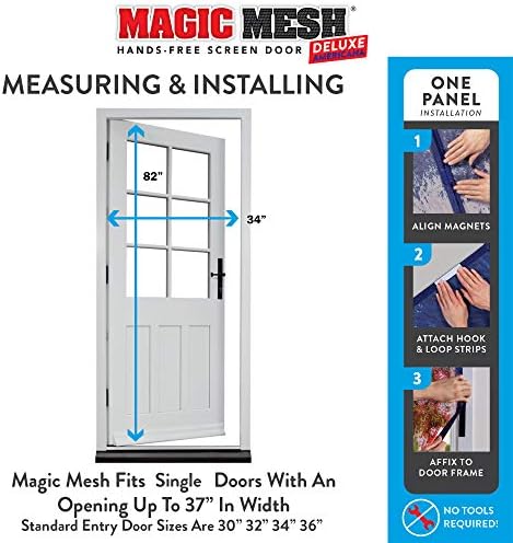 - EASY INSTALLATION: Magic Mesh includes everything you need - (1) 39"x 83" mesh panel, (9) hook & loop strips, and (20) wood tacks for a secure fit; Installation is effortless, peel off the adhesive backing, apply the hook & loop strips to your door frame.