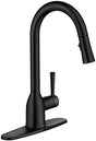 Moen Adler Matte Black One-Handle High Arc Kitchen Sink Faucet with Power Clean, Modern Kitchen Faucet with Pull Down Sprayer, 87233BL