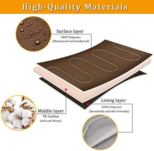- 【Ultra Comfort & Durable】Outer material: Nylon (Waterproof and Durable), Lining:100% Polyester (Breathable and skin-friendly), Premium Polyester keeps the temperature from 55 to 60℉ and provides a ultra-comfort sleep environment to people.