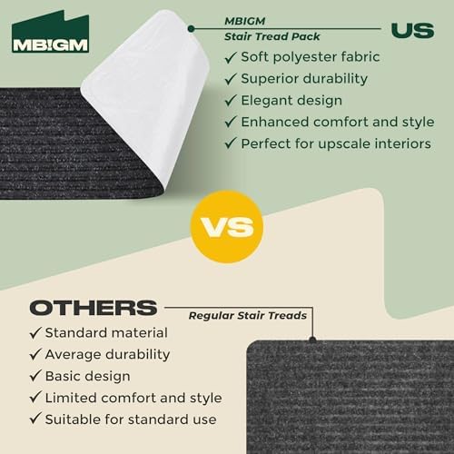 - SAY GOODBYE TO FALLING DOWN: MBIGM is devoted to invent products that can keep people safe in their daily life. This product, the anti-slip stair treads can obviously secure your safety when you go up and down the stairs. In addition, they won't destroy your stairs at all, because the anti moving bottom we created is NOT glue or permanent adhesive. And there won't be any residue when you remove them from the steps.