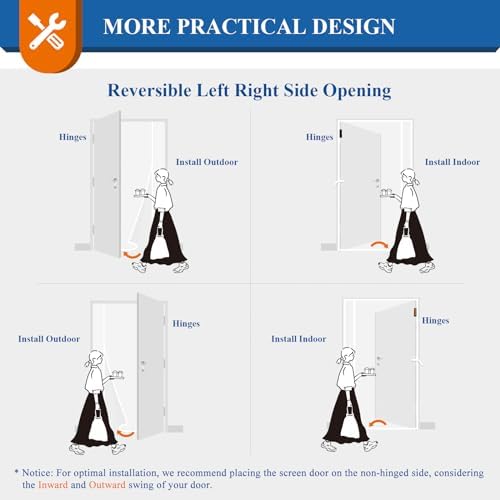 - EASY INSTALLATION: Installing our side opening magnet screen door is quick and easy. Attach it to the door frame using the included hook&loop strips, and for added security, use the extra push pins provided. A clear installation instruction manual is also included for your convenience