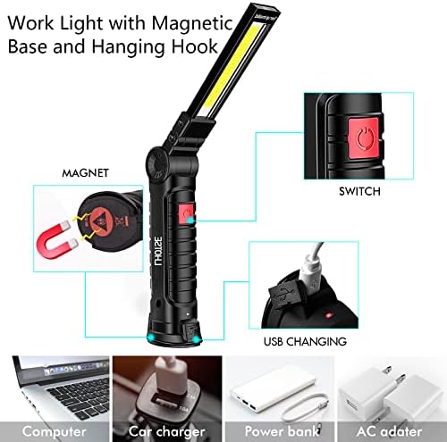 - 【360° Rotation & Hook】- 360° rotation design, magnetic base and reversible hook allow you to use it in multiple situations. The magnetic flashlight can hang on top of the tent. Suitable for repairing cars and plumbing, reading, camping.