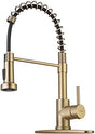 WEWE Brushed Gold Kitchen Faucet with Pull Down Sprayer, RV Brass Kitchen Faucet Stainless Steel Single Handle Spring Faucet with Deck Plate for Farmhouse Utility bar Laundry Sinks