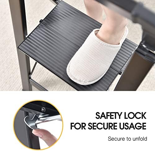 KINGRACK Aluminium 3 Step Ladder, Lightweight Step Stool with Non-Slip Pedals, Handrail, 330 LBS Foldable Step Ladder for Kitchen, Garage, Home, Space Saving, Sturdy and Portable, Black